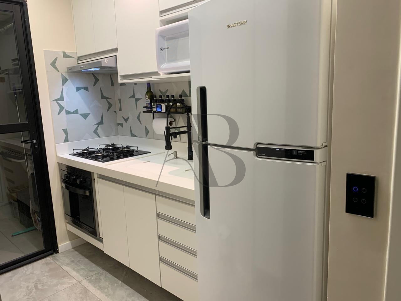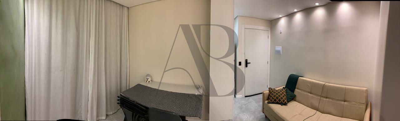 Apartamento de 43 m² no 2º andar, com varanda, acabamento moderno e diversos upgrades: planejados na cozinha e banheiro, bancadas em quartzo branco, cooktop, forno elétrico, aquecedor a gás, teto rebaixado e interruptores inteligentes em todos os ambientes.