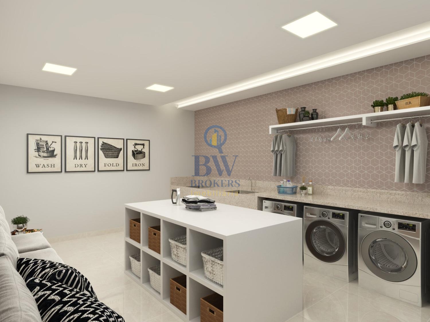 • Cozinha planejada integrada à lavanderia