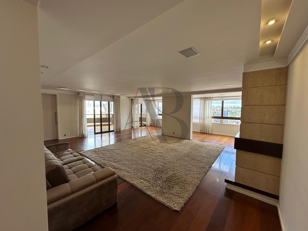 Amplo living para 3 ambientes, sala de jantar, home theater, adega, sala de almoço e dependência de serviço. Ambientes sofisticados, com portas blindadas, isolamento acústico e acabamentos de altíssimo nível.