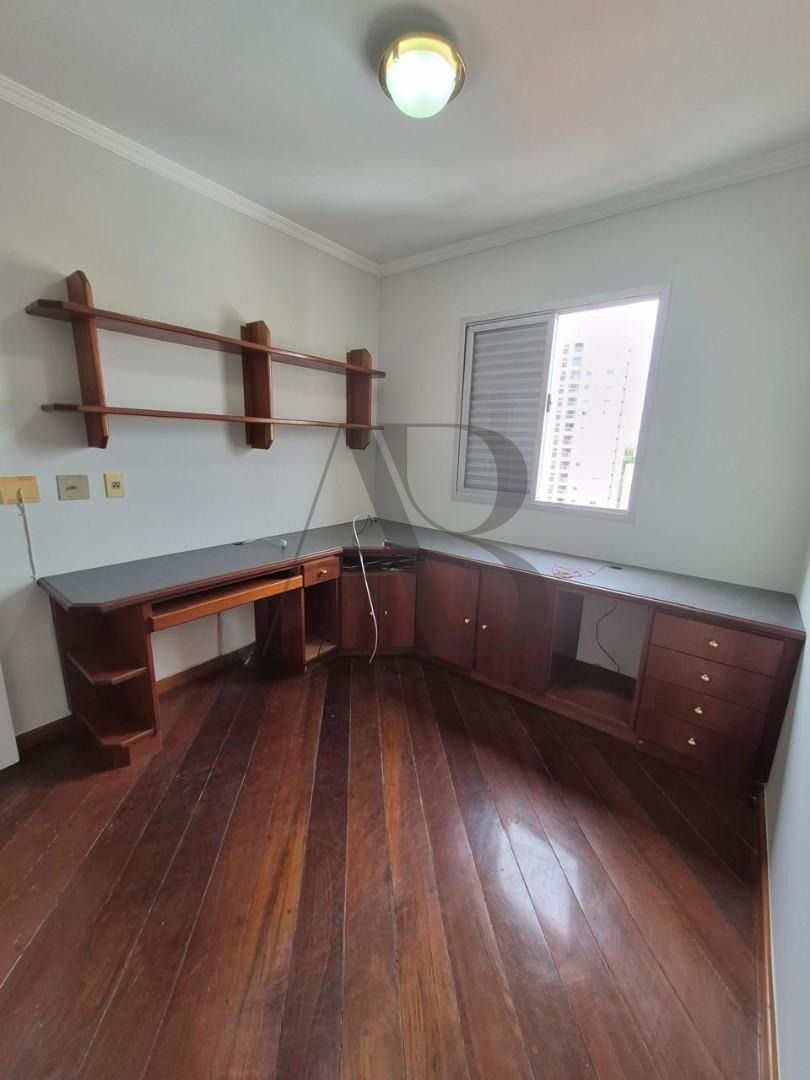 Apartamento com piso de madeira recém sintecado, andar alto, com 3 dormitórios, sendo 1 com suíte, closet e sacada, outro com escritório todo planejado em madeira maciça, banheiro social amplo também com móveis planejados, sala ampla para dois ambientes com uma sacada que oferece uma vista deslumbrante. A cozinha é clara e ampla, com móveis planejados, área de serviço com varal de teto, armários e um banheiro de serviço revertido em depósito que foi recentemente pintado, garantindo um ambiente renovado.