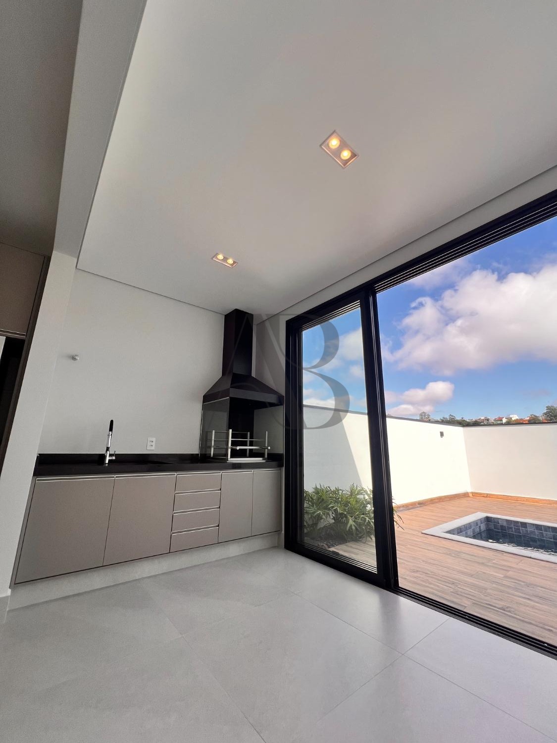 São 3 suítes com planejados, banheiros com box e espelhos, cozinha totalmente equipada com geladeira, forno, micro-ondas, cooktop e coifa. O espaço gourmet com armários e churrasqueira se integra à piscina e ao paisagismo, criando um ambiente perfeito para receber.