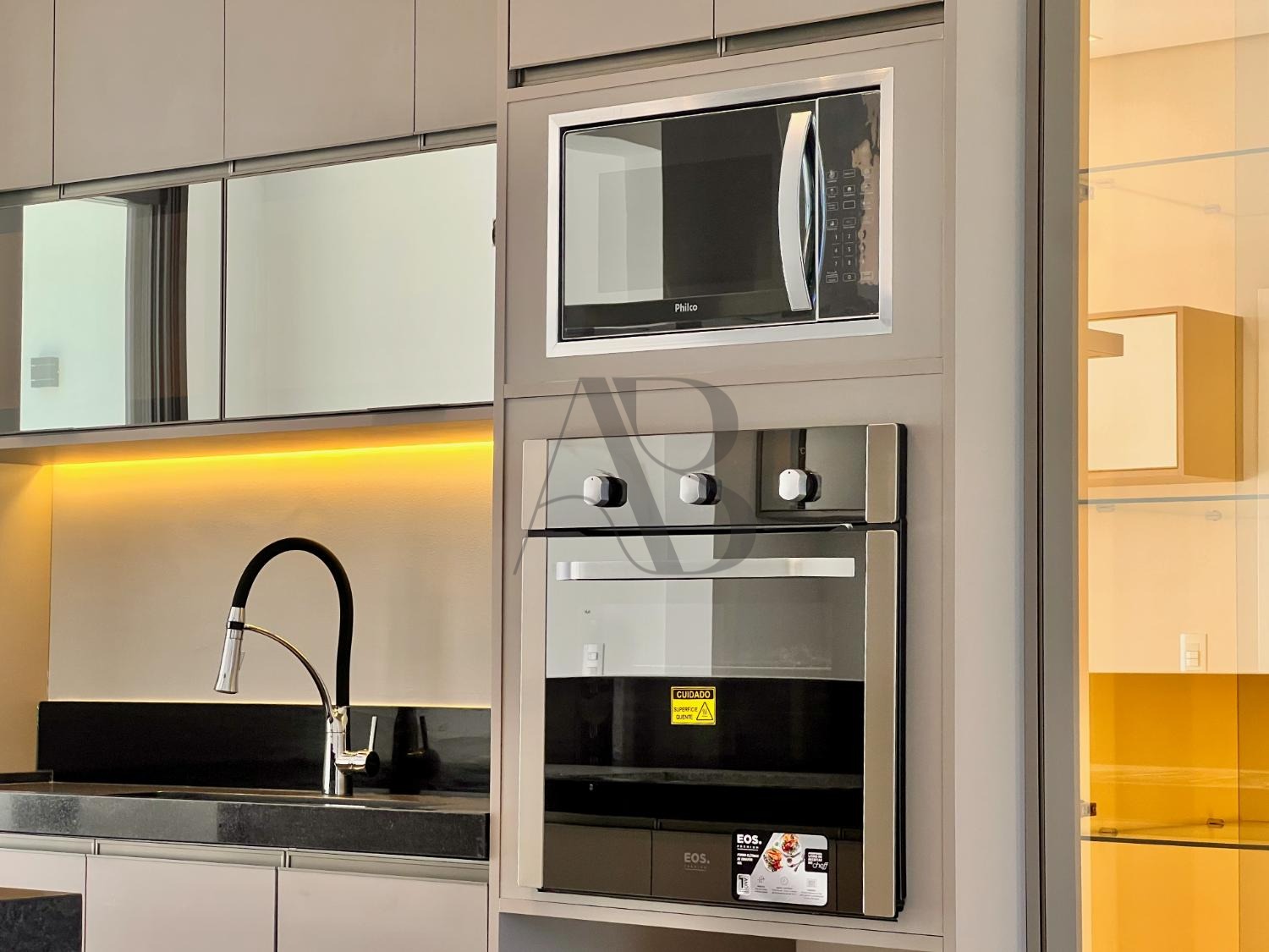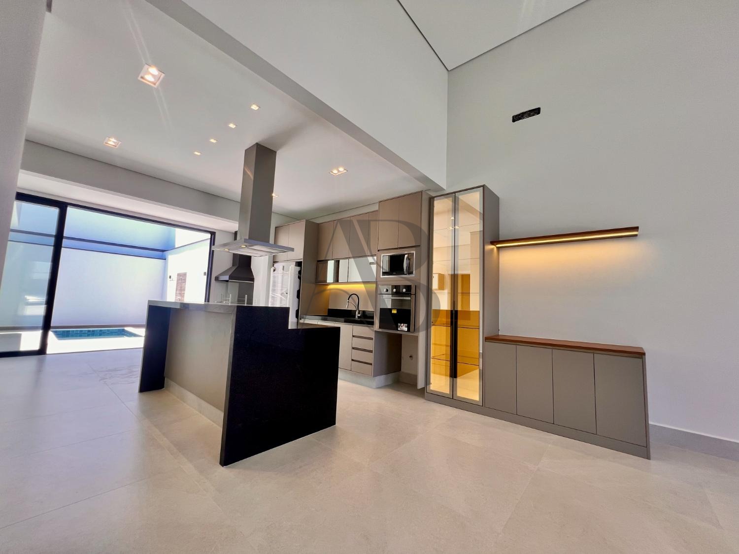 Conta com 3 suítes com planejados, banheiros com box e espelhos, além de cozinha completa equipada com geladeira, forno, micro-ondas, cooktop e coifa. O espaço gourmet com marcenaria e churrasqueira se conecta à piscina e ao paisagismo, criando um ambiente ideal para receber.