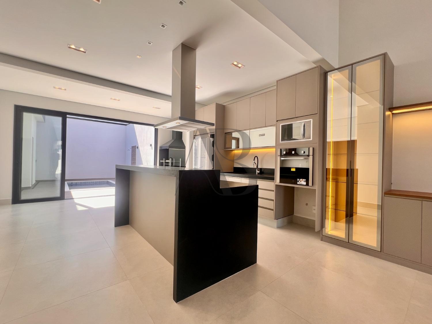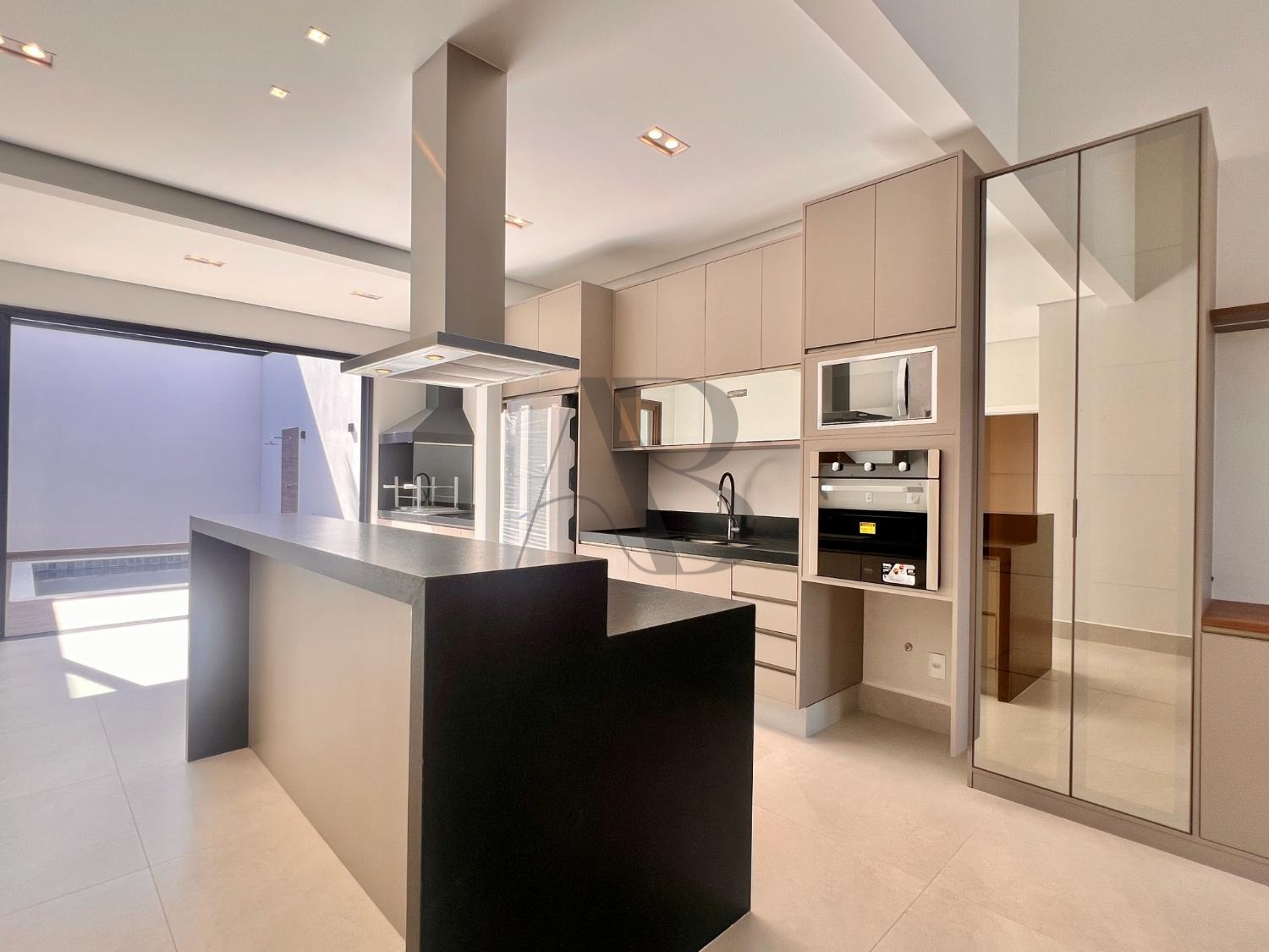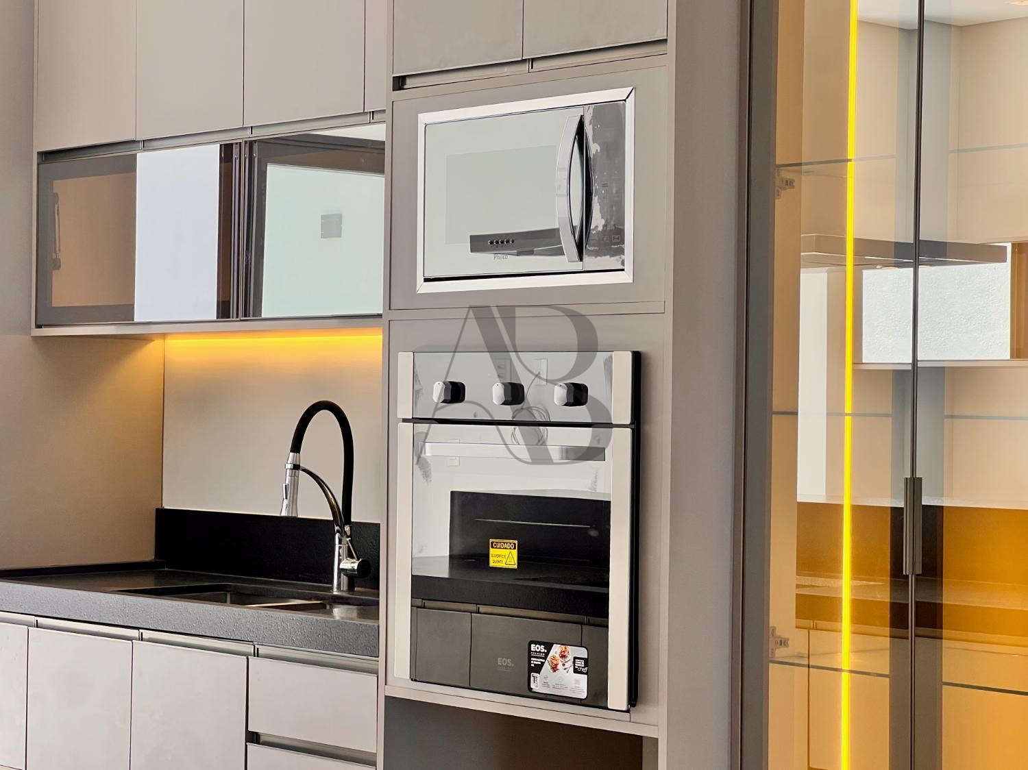 Dispõe de 3 suítes com planejados, banheiros com box e espelhos, cozinha completa equipada com geladeira, forno elétrico, micro-ondas, cooktop e coifa. O espaço gourmet com churrasqueira se integra à piscina e ao paisagismo, criando um ambiente sofisticado e acolhedor.