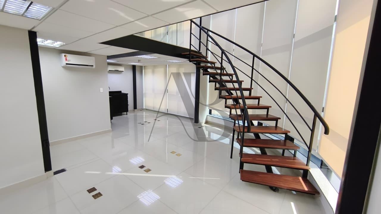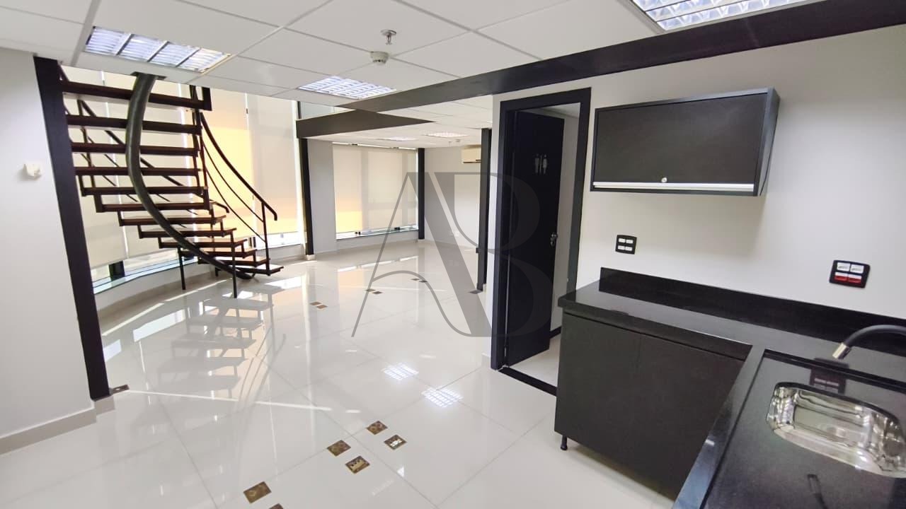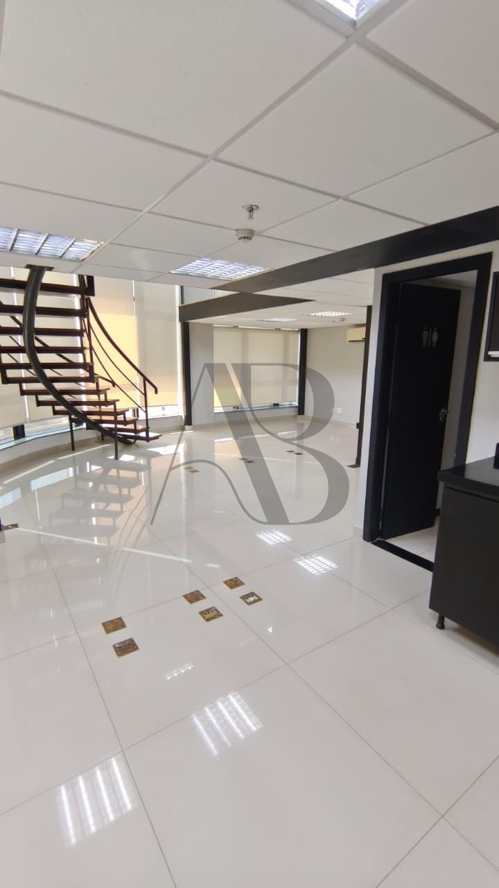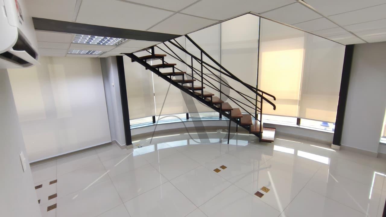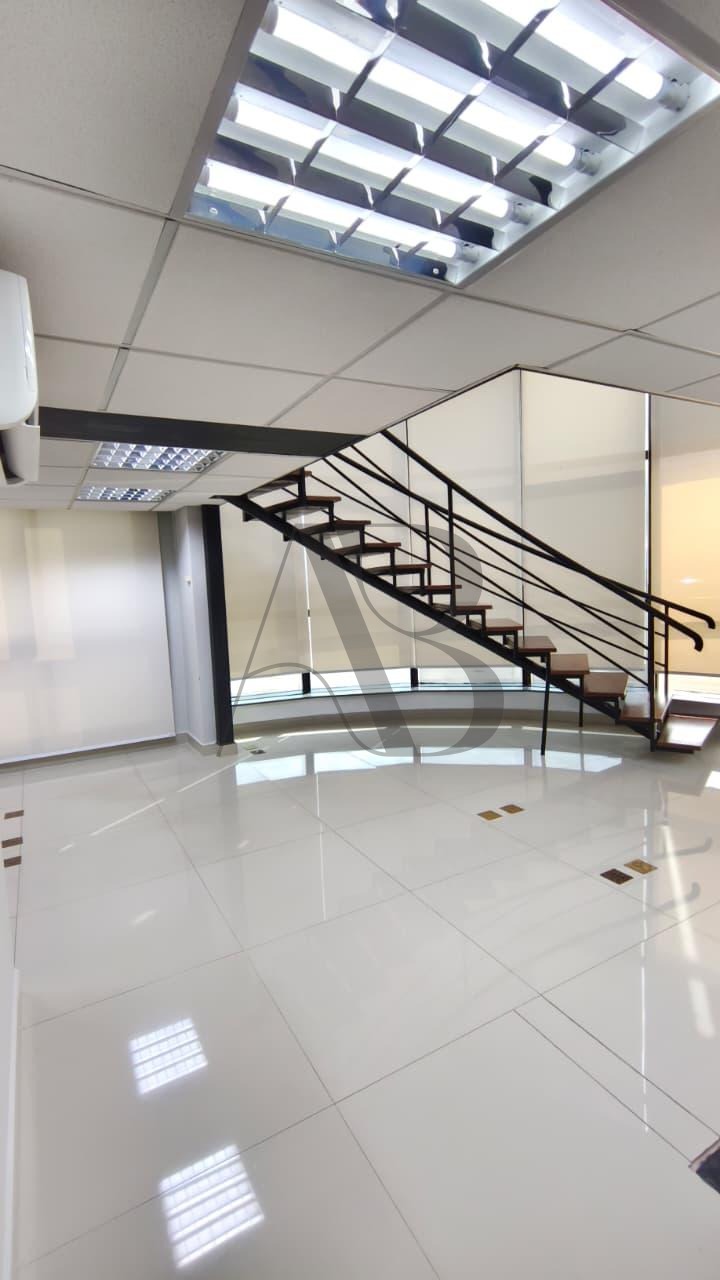 Sala térrea com iluminação natural em todos os ambientes. 100 M² de área dividida em dois níveis. 45 M² no andar superior com acesso de escada decorativa, piso em porcelanato, guarda corpo e portas divisórias em vidro, cortinas corta sol em todas as janelas, ar condicionado, copa e banheiro. 2 garagens no subsolo e toda estrutura de um Prédio Comercial - Recepção para cadastramento de clientes com sala de espera, estacionamento terceirizado, auditório e etc, não perca essa oportunidade, agende já sua visita!!