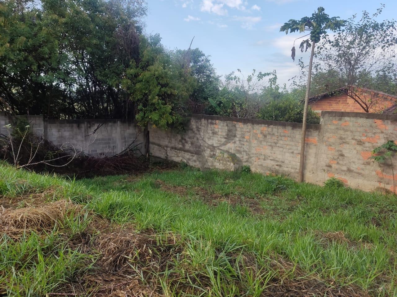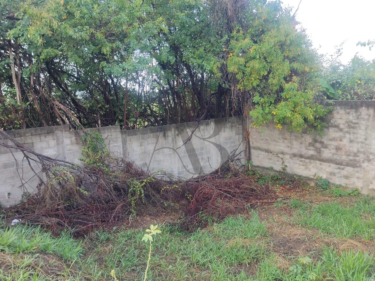 Terreno á venda com 300m² com pequeno declive no fundo.